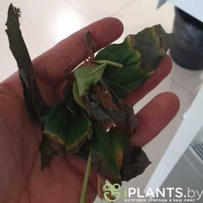 В домашних условиях поливают вазон в том случае, когда подсохнет верхняя часть грунта. Если в процессе полива часть воды стекла в поддон – от нее нужно избавиться.![]()
