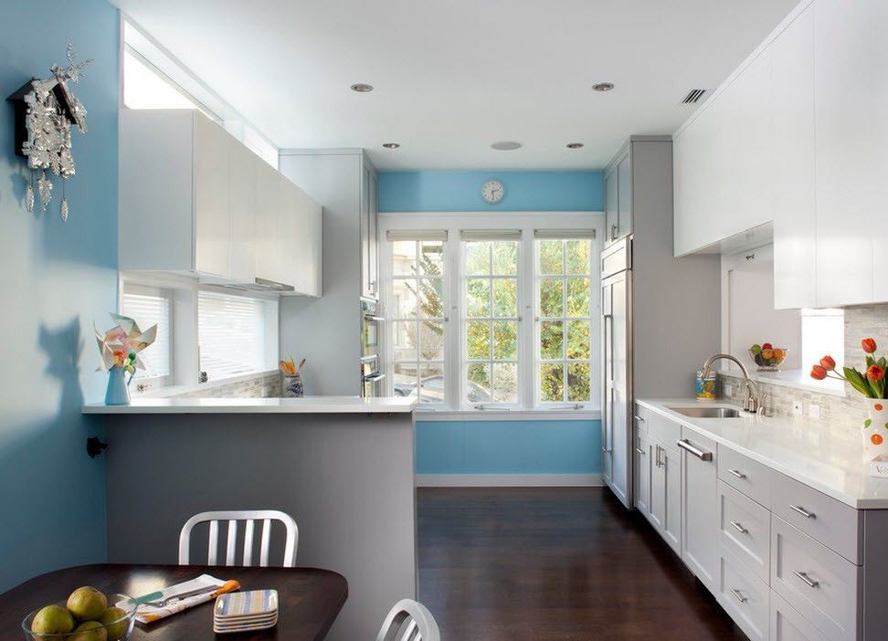 Наш совет: если хотите, чтобы кухонный фасад и стены были одинакового цвета, сначала выбирайте фасады гарнитура, а к ним – оттенок краски. Но никак не наоборот. - разный диапазон цен: стоимость отделки можно подобрать в зависимости от вашего бюджета. Краска на всю кухню может стоить от нескольких тысяч за российский материал до десятка тысч за английские или американские бренды.