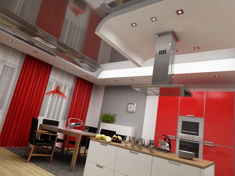 Какой потолок лучше сделать на кухне (66 фото): кухня с газовой плитой