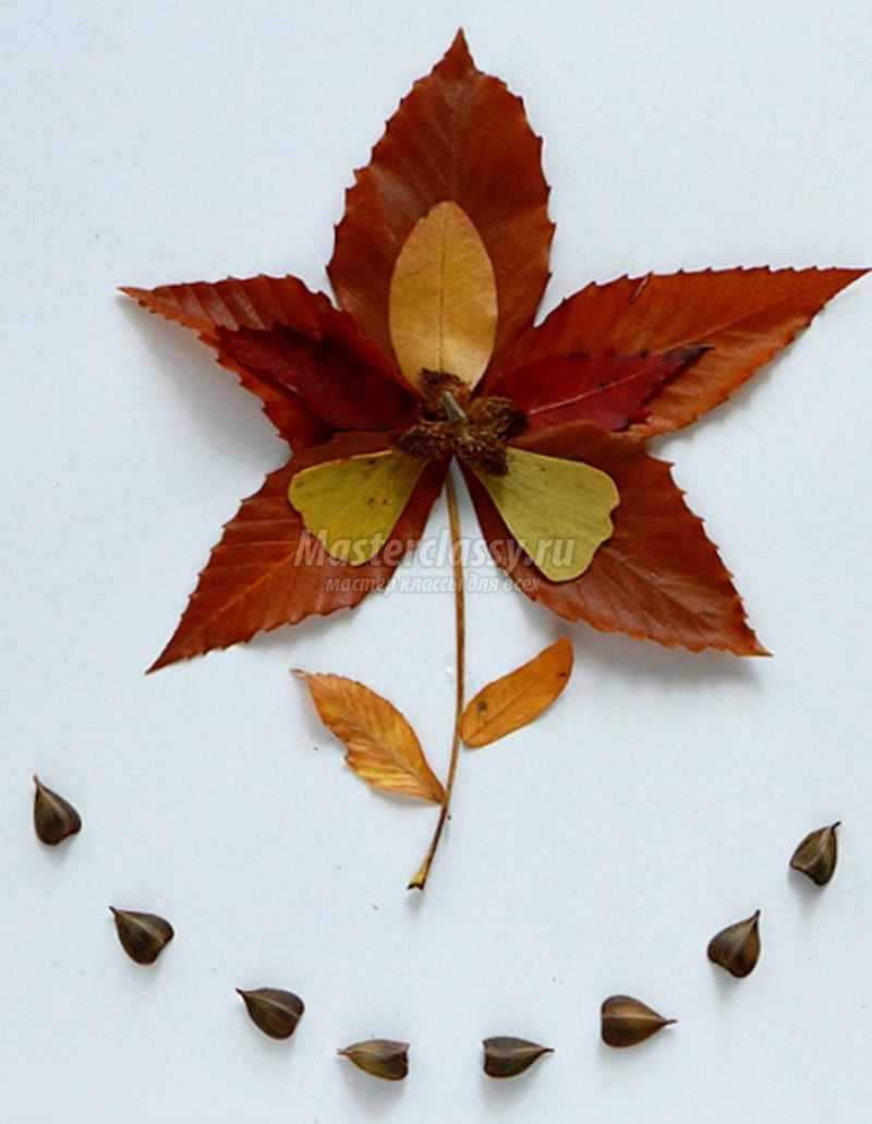 Аппликация из листьев бабочка, мастер