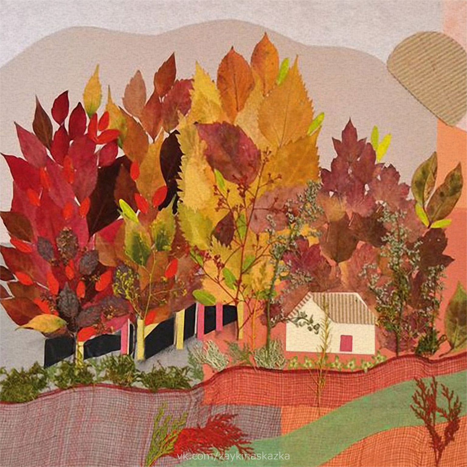 Коллаж из сухих листьев.