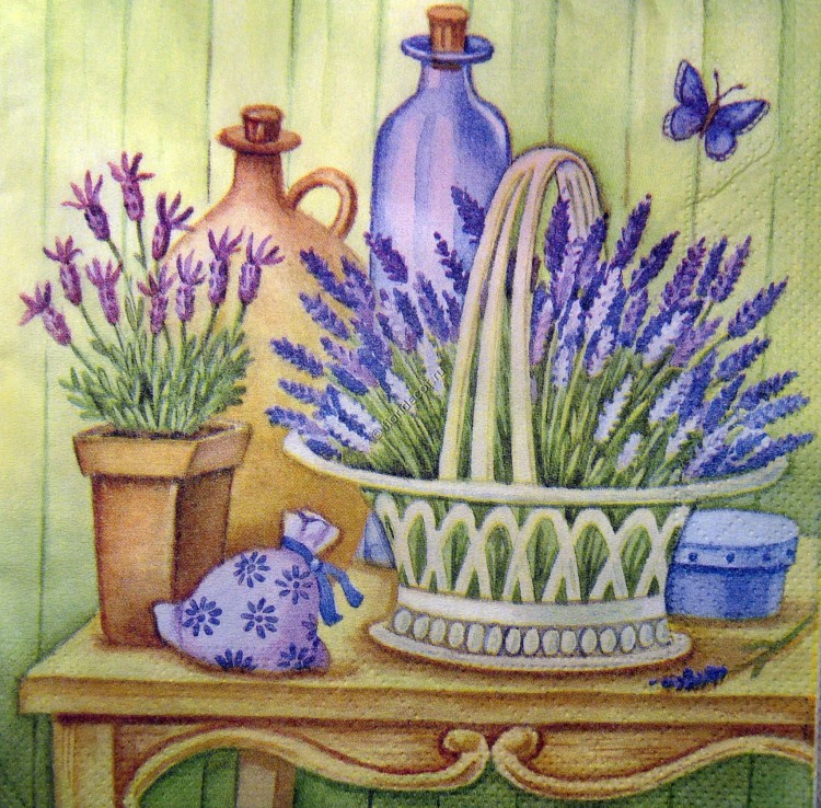 Это могут быть и изображения подворья – милые курочки и петухи, котенок на крылечке, а также душистые прованские травы во дворе. Это и натюрморты с чайничками, вазочками с лавандой и домашней выпечкой. Это и милая керамика для кухни, и бутылки с южным вином. Вы можете сделать распечатки на цветном принтере с использованием рисовой бумаги или заказать в интернет-магазине декупажные карты на тему провансаля.