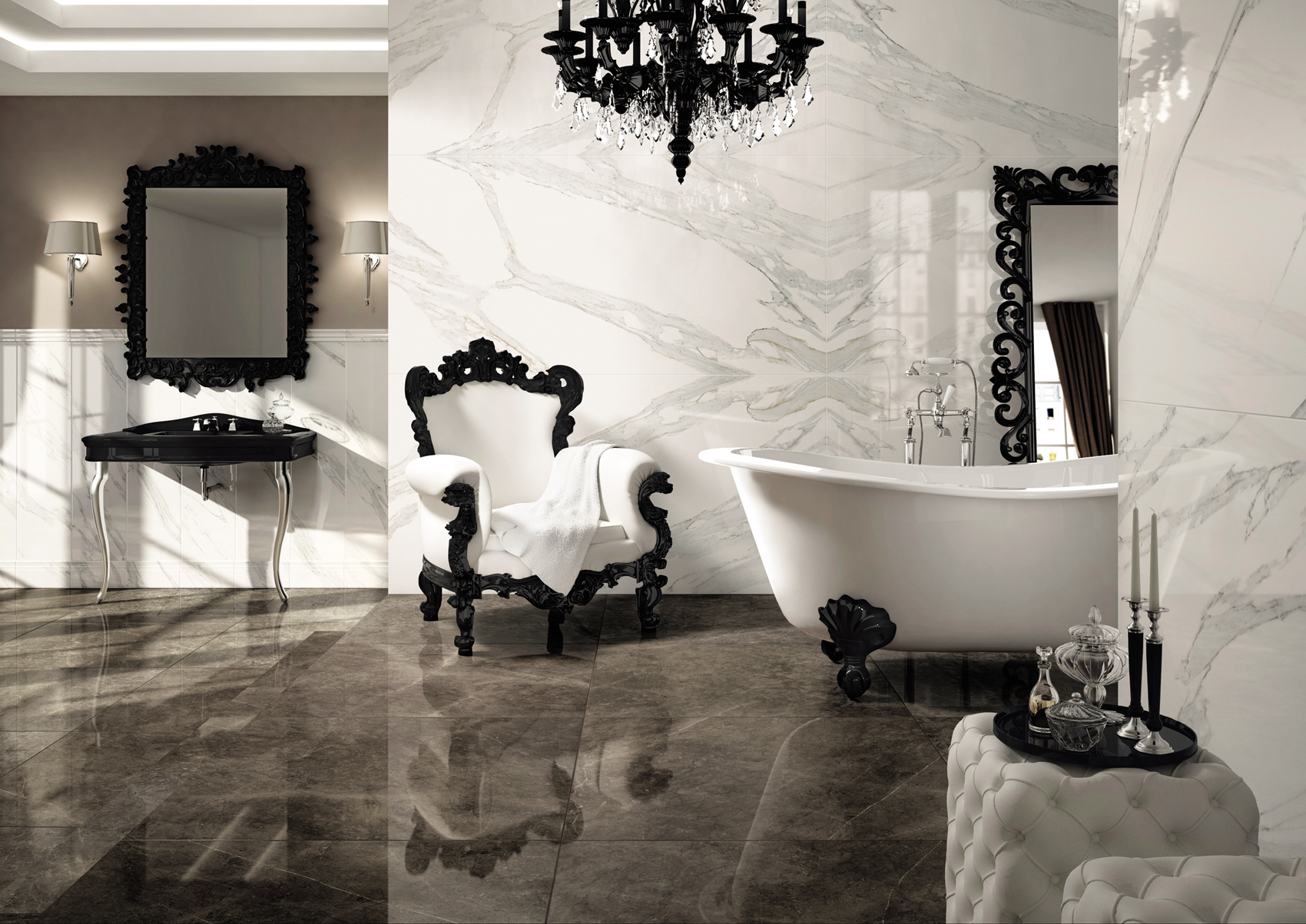 Облицовка от пола до потолка создает идеальный фон, неподвластный времени.