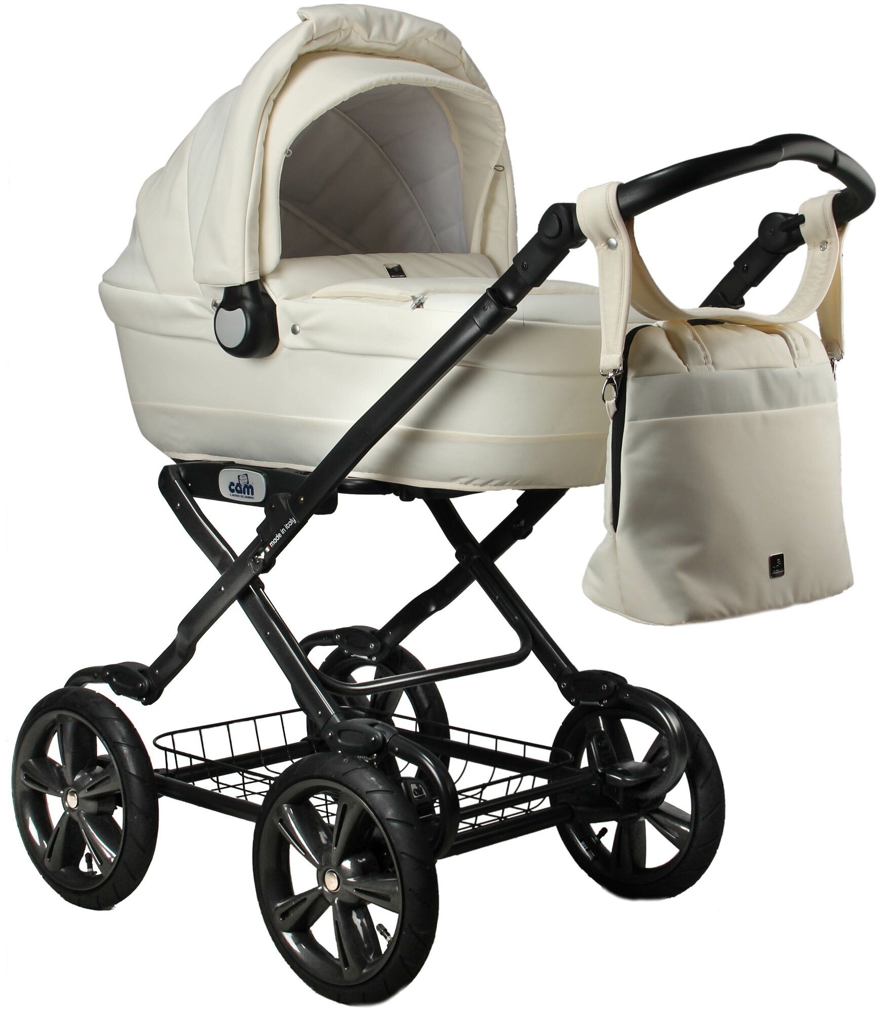 Классическая коляска включает в комплект люльку для новорожденного и шасси с колесами. Большинство таких колясок представлены на крестообразной раме и имеет большие надувные колеса со спицами.