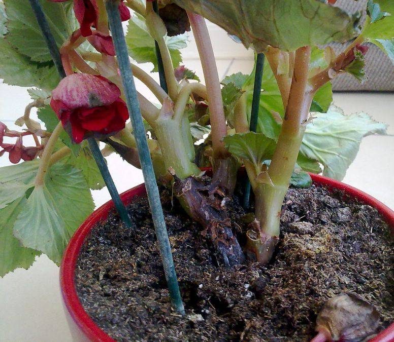 В сухой нагретой земле корни прекращают рост и могут совсем погибнуть, опадают цветки, листья и бутоны, и остается почти голый стебель. Плохо реагирует бегония на низкую влажность воздуха.