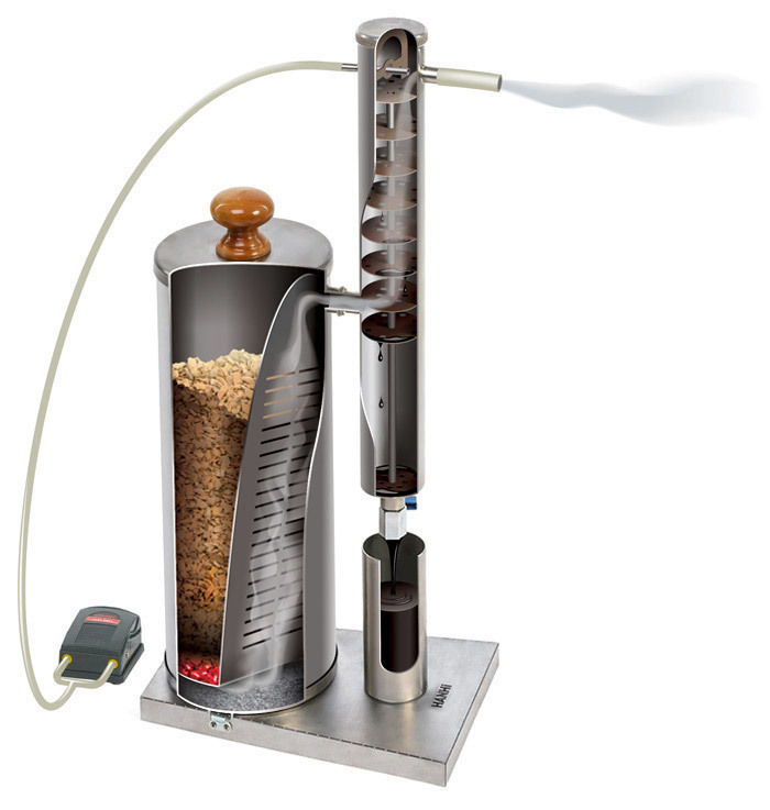 Отличительной чертой такой коптильни является достаточно длинный дымоход вытянутой формы. Именно дымоход обеспечивает дымовым газам 100%-е выгорание.