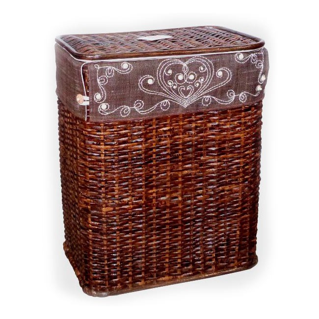Разумеется, не только прямоугольные короба смотрятся эффектно и удобно вмещают вещи. Круглые корзины не менее практичны и нравятся хозяйкам. Мастера могут изготовить вариант точно по размерам, тонировать в нужный цвет. Сложные формы с ужениями и расширениями обычно не используют, если речь идет о хранении белья.