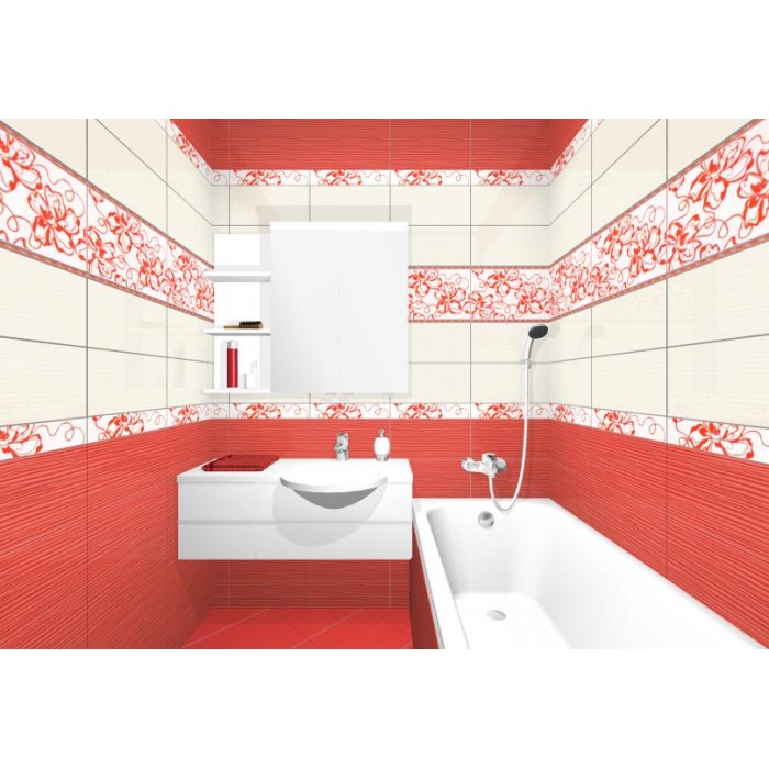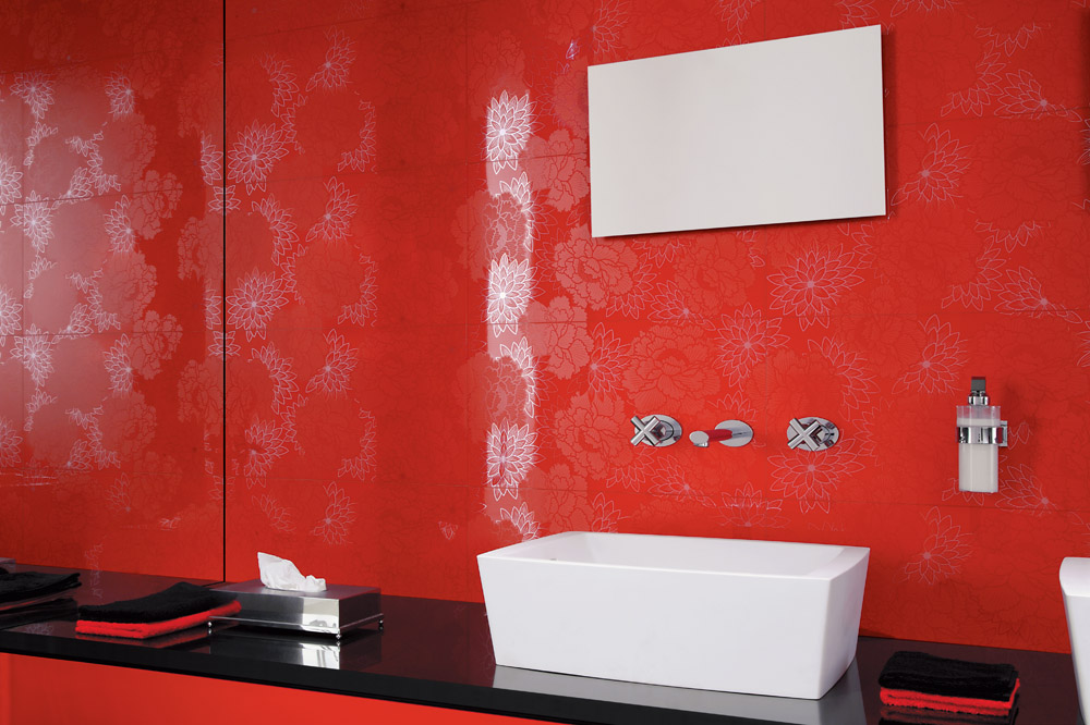 Среди отечественных производителей особого внимания заслуживает фабрика Kerama Marazzi, которая своим качеством ничем не уступает Италии и Испании. Красный цвет здесь занимает особое место в коллекции «Сакура». Причем красная плитка в ванной, фото в разных вариантах отдельно представлены для пола и стен в нашей галерее, присутствует множество декоративных элементов, что является видимым преимуществом этой коллекции. Все вместе это отлично смотрится.