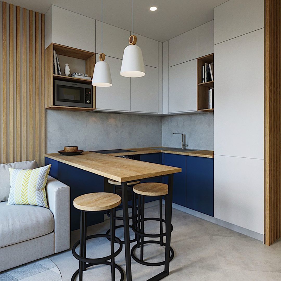 Для отделения кухни от гостиной лучшим приемом будет барная стойка. Она занимает значительно меньше места, чем обеденный стол и будет отличным дополнением к кухонной рабочей поверхности.