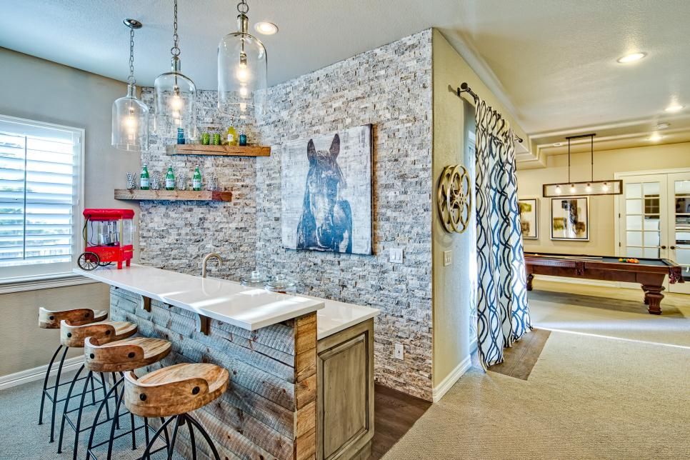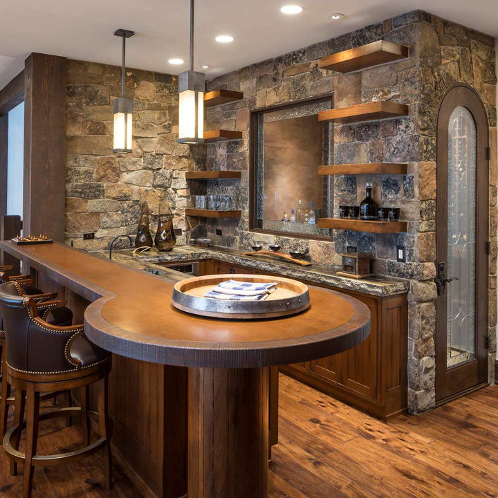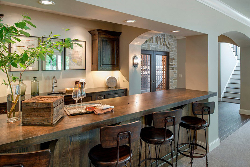 Выбирая материал для изготовления барной стойки, учитывайте общую стилистику помещения.