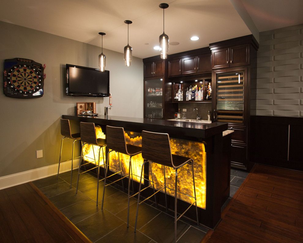 - Если зона бара узкая и длинная, то сделайте дополнительное освещение — зрительно увеличит площадь;