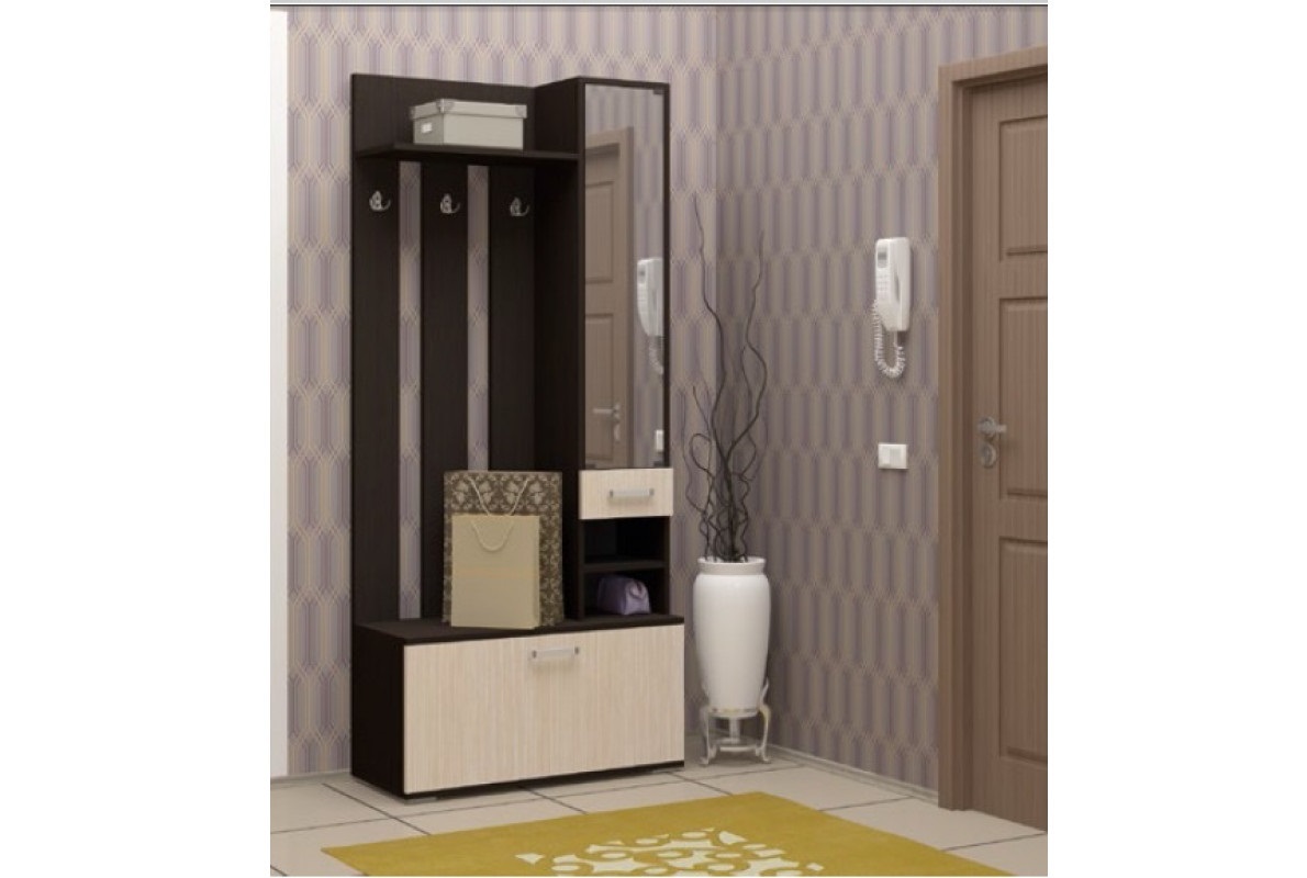 - Гарнитур в прихожую нужно выбирать с учётом формы комнаты. Количество и размеры предметов будут зависеть от её длины и ширины. Следует помнить, что для свободного передвижения нужно оставить проход шириной не менее 80 см.