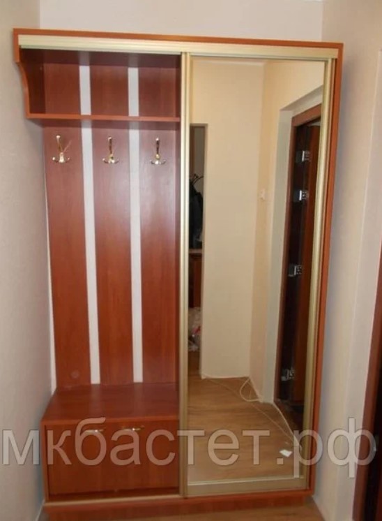 - Часто встречающимся предметом мебели в прихожей является шкаф-купе, в котором предполагается место для верхней одежды, головных уборов и иногда обуви. Не стоит ставить его прямо у входной двери. Это значительно усложнит ваши сборы на улицу или прибытие домой. Не забывайте и о зеркальных дверцах шкафа, которые визуально увеличивают пространство.