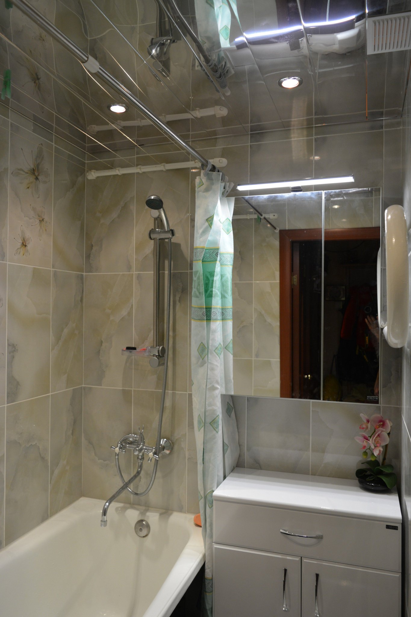 - Повесьте новую шторку для душа.