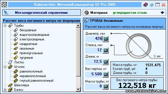 Также есть возможность задать необходимую массу металлопроката (например, когда вы знаете, что можете перевезти металл с помощью грузовика с определенной грузоподъемностью) и, зная его основные промеры, определить общую длину изделия.