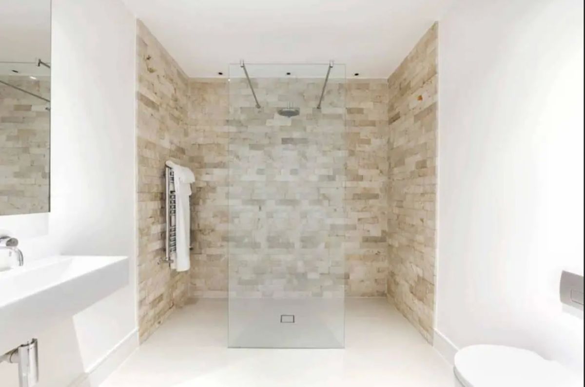 В случае открытой планировки интерьера, когда жилая комната объединена с другими помещениями, «санитарную» зону лучше скрыть, дабы избежать неловких моментов. Здесь унитаз и душевая кабина расположены за стеной, возле которой установлена раковина. Наиболее часто эксплуатируемые площади в помещении покрыты плиткой, остальные защищены специальными влагостойкими покрытиями.