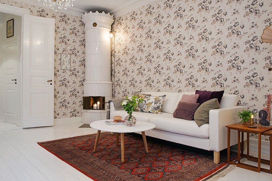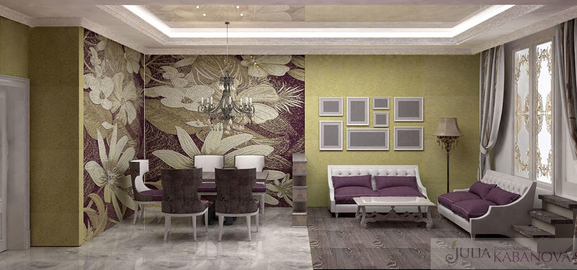 При помощи обоев-компаньонов можно выделить какую-либо область, например зону отдыха у дивана и кресел или уютное место для чтения. Кроме того обои компаньоны будут хорошим интерьерным решением для гостиной совмещенной с кухней, такой способ отделки поможет обозначить зоны, визуально разделив их.