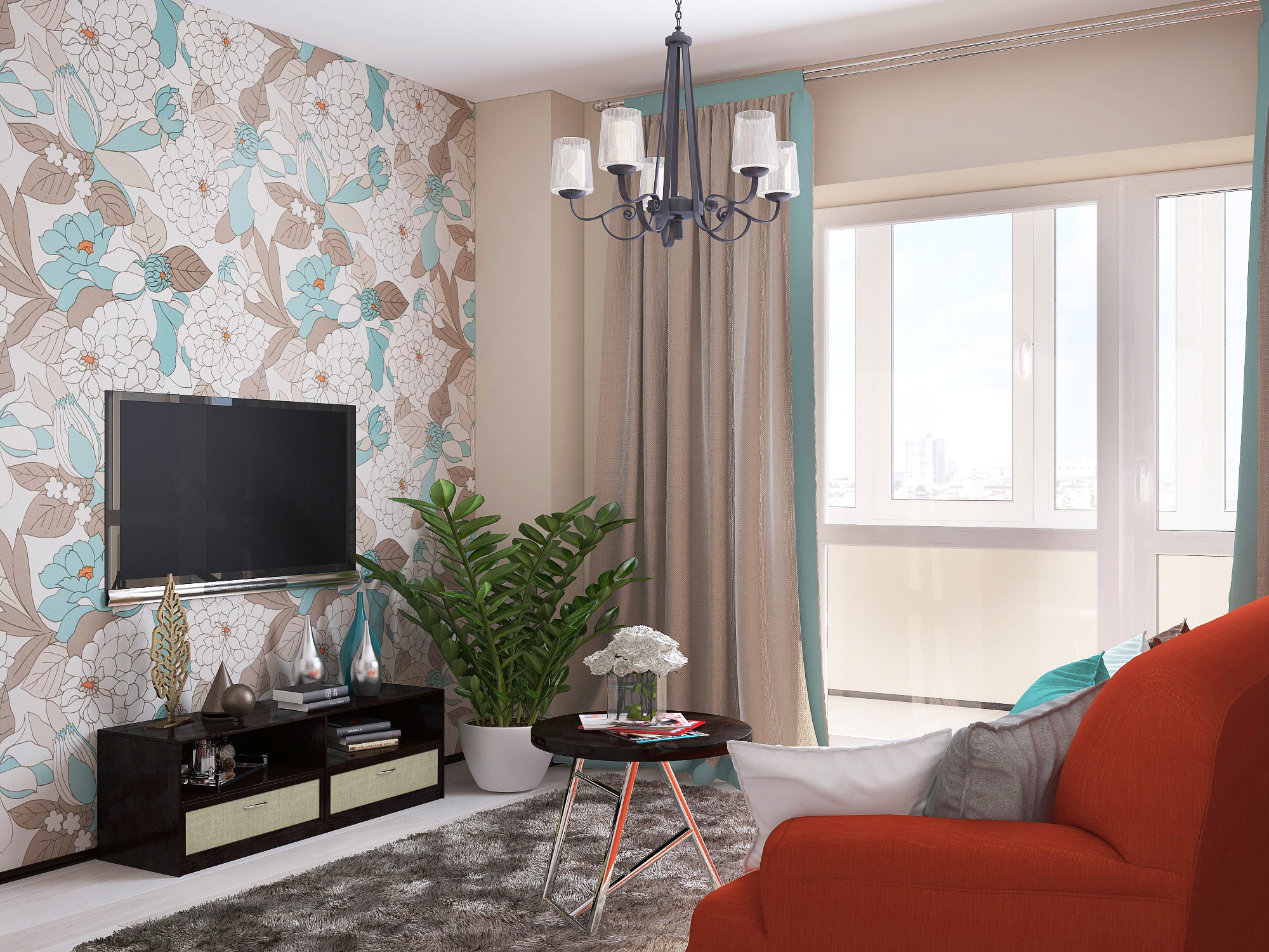 В отличие от спальни или кухни, в зале будет уместно сочетание обоев компаньонов ярких цветов и с объемными рисунками, которые может объединять общая тематика.