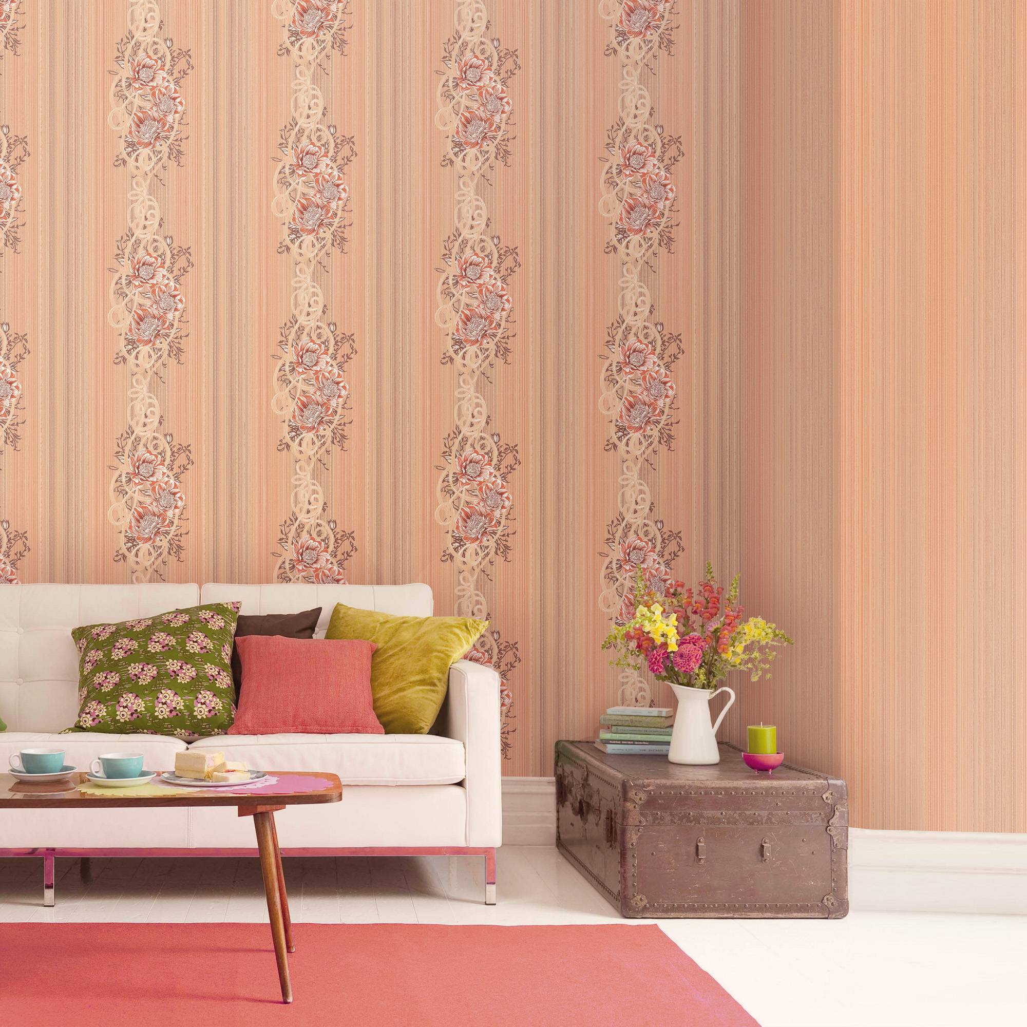 Сочные краски будут выделяться на коричневом фоне. Сочетание с обоями компаньонами кремового и бежевого оттенка подойдет для отделки интерьера в классическом стиле.