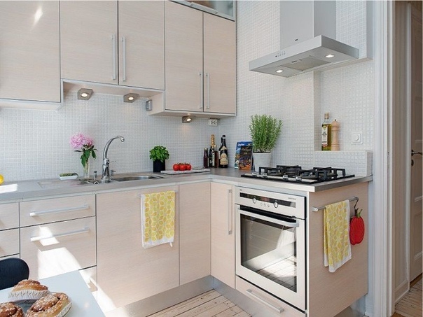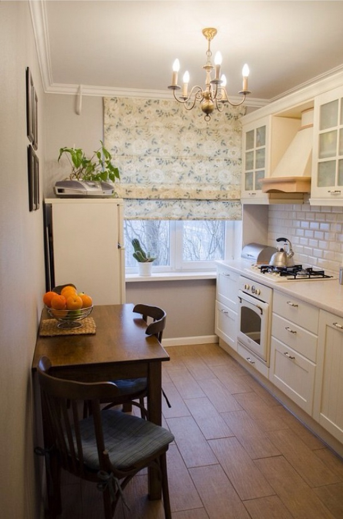 Для небольших кухонь будет намного уместнее, если ее атмосфера будет легкая и воздушная. Если это обеспечить то даже небольшая по площади комнате станет зрительно более свободной. Следовательно, чтобы не нагрузить не большую кухню, для ее отделки необходимо выбирать материалы те, которые позволяют добиться подобного визуального эффекта.