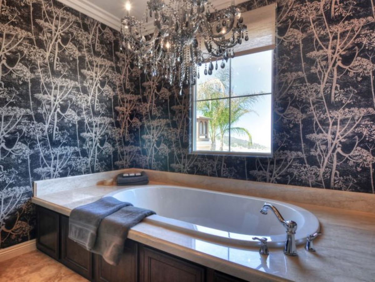 Обои – показатель оригинальности и эксклюзивностиСчитают, что обои не самый практичный материал для создания интерьера в ванной комнате. Но это ошибочное мнение. Сам по себе исходник недорогой и клеится легко, то это дает возможность для экспериментов и новых способов декора стен. Иногда результат получается ошеломительным.