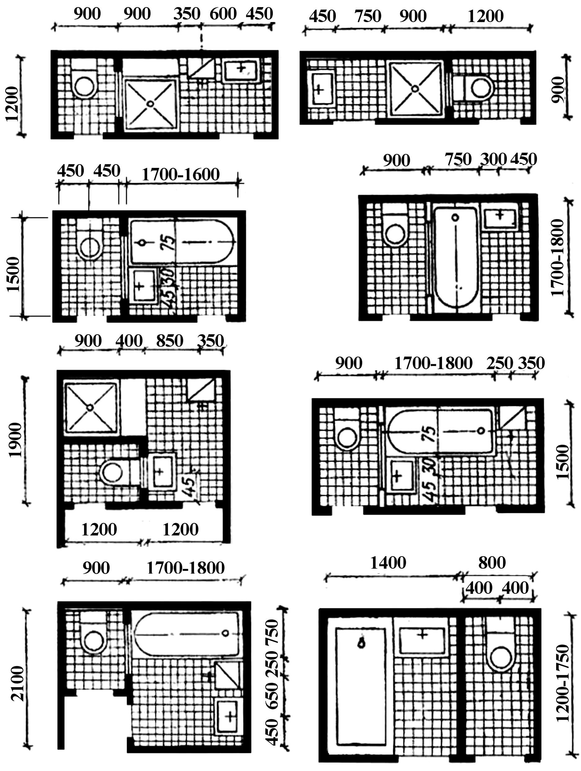 • высота ванной и туалета от пола до потолка—не менее 2,5 м;