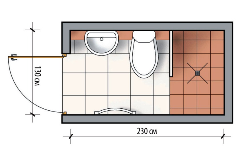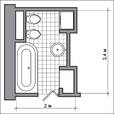 Грамотная планировка совмещенного санузла даже на очень маленькой площади в 2 м.кв. позволяет разместить в помещении всю необходимую сантехнику, как показано на плане ниже.