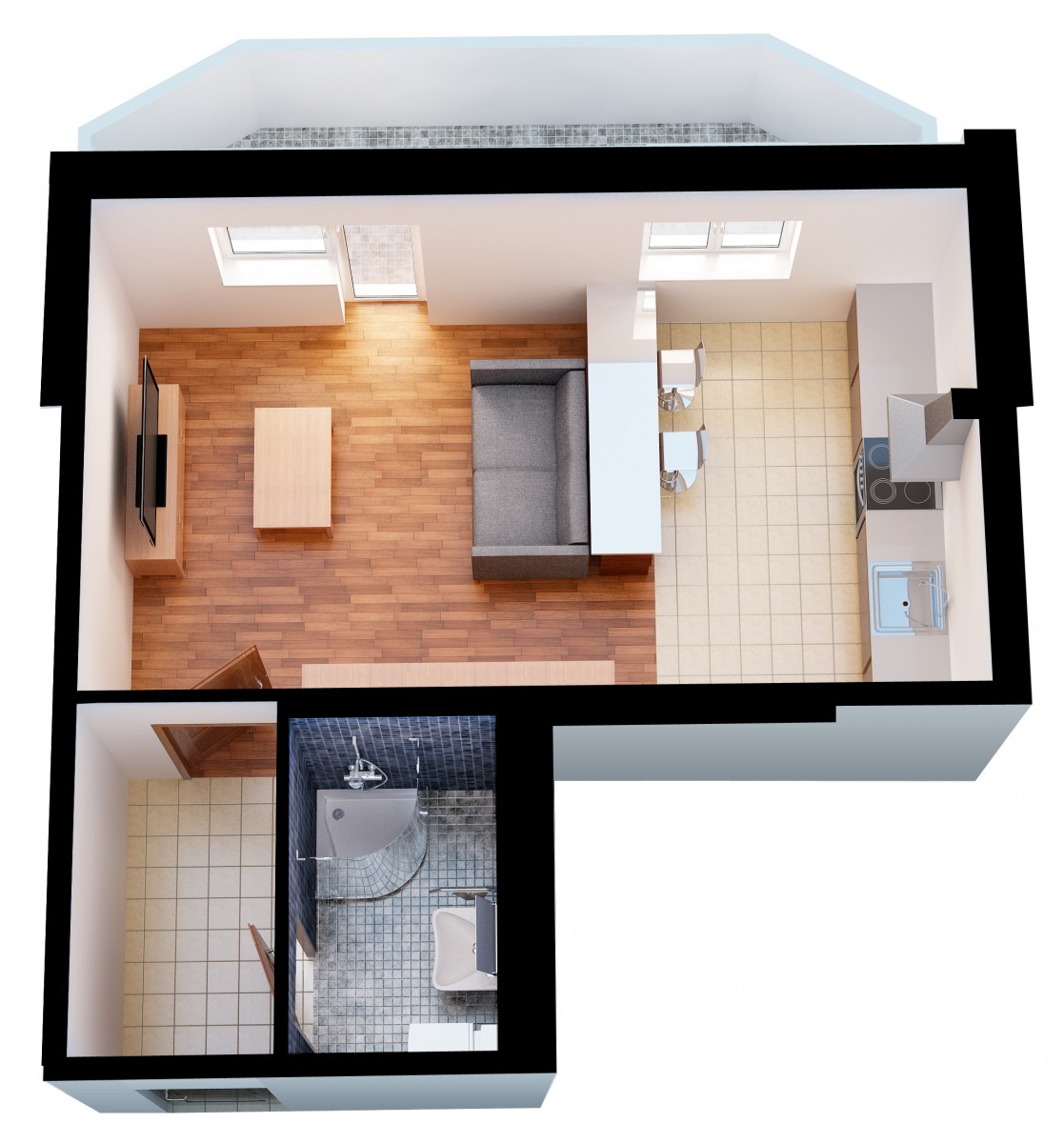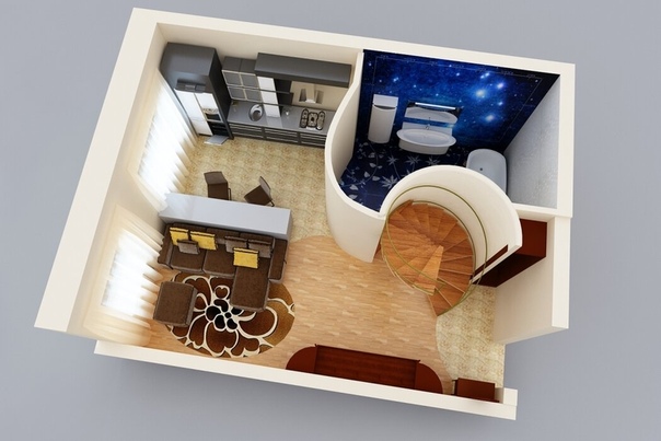 - такой тип жилья удобен эргономикой — все под рукой, не нужно ходить из комнаты в комнату, открывать и закрывать двери;