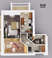 - Однокомнатная квартира подразумевает отделенную стеной кухню, а также выделенный коридор и санузел.