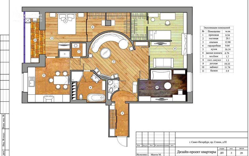 Возможно оформление и подача проекта в виде рабочих чертежей, как и в классическом дизайн-проекте. Информация о проекте пользователя разнесена по 16 листам.