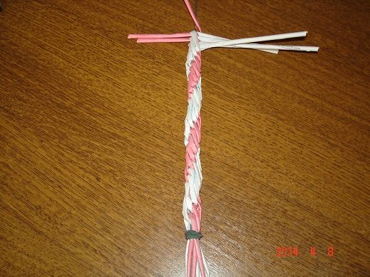 Это простой и надежный способ закрепить рабочие трубочки. Их концы скрыты в плетении, при этом надежно зафиксированы, зажаты. Для тех, кто только начинает осваивать плетение из бумаги, это лучший, пожалуй, вариант.