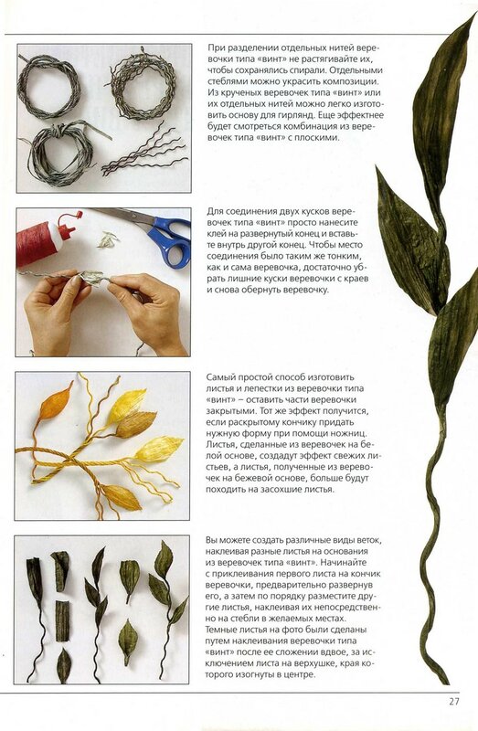 - Плотные и негибкие трубочки можно сбрызнуть водой из пульверизатора и выдержать в полиэтилене 15-20 минут, после этой манипуляции бумажная лоза станет послушной и не будет оставлять заломов, а ее крепость вернется после полного высыхания.