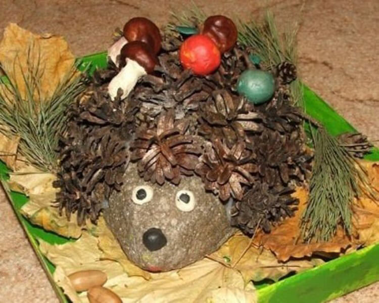 Осенние поделки из иголок, каштанов, желудей и орехов