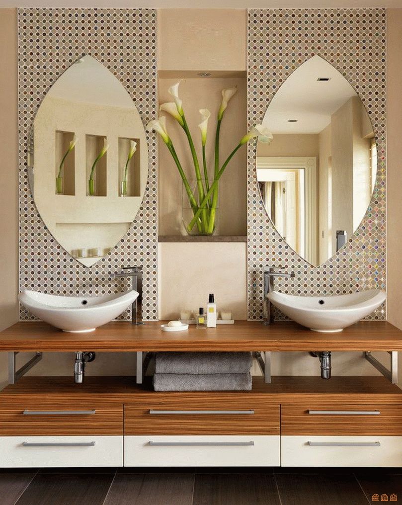 - Туалетный столик с двумя раковинами, обычно используемый в главных ванных комнатах