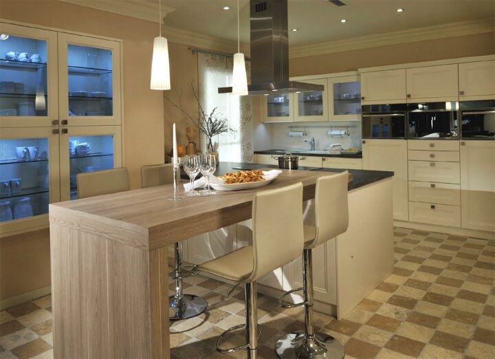м. совмещена с гостиной, то барная стойка, остров и полуостров — хорошие альтернативные варианты обеденных зон, которые заодно решают вопрос с зонированием.