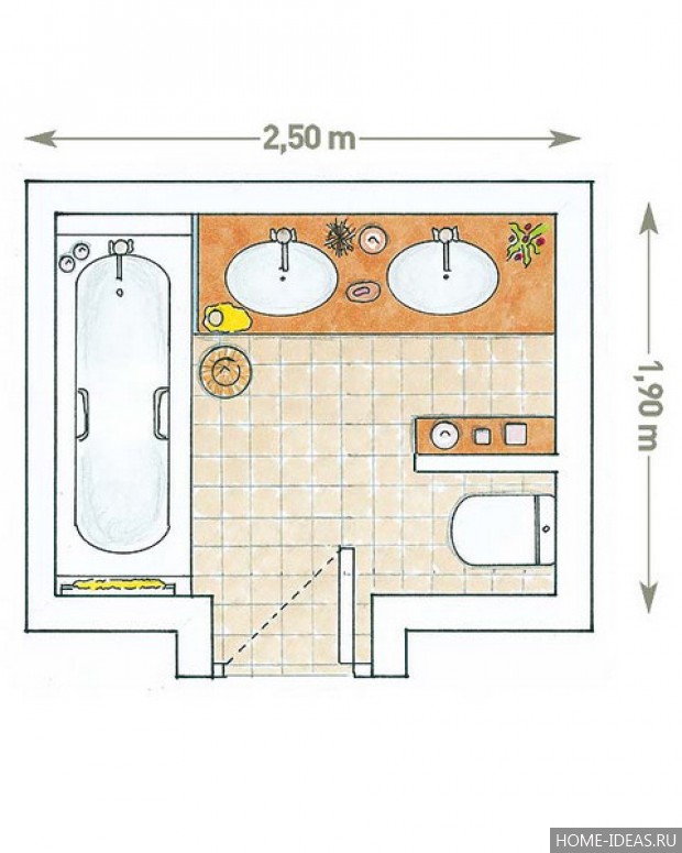 - Планировка маленького санузла.