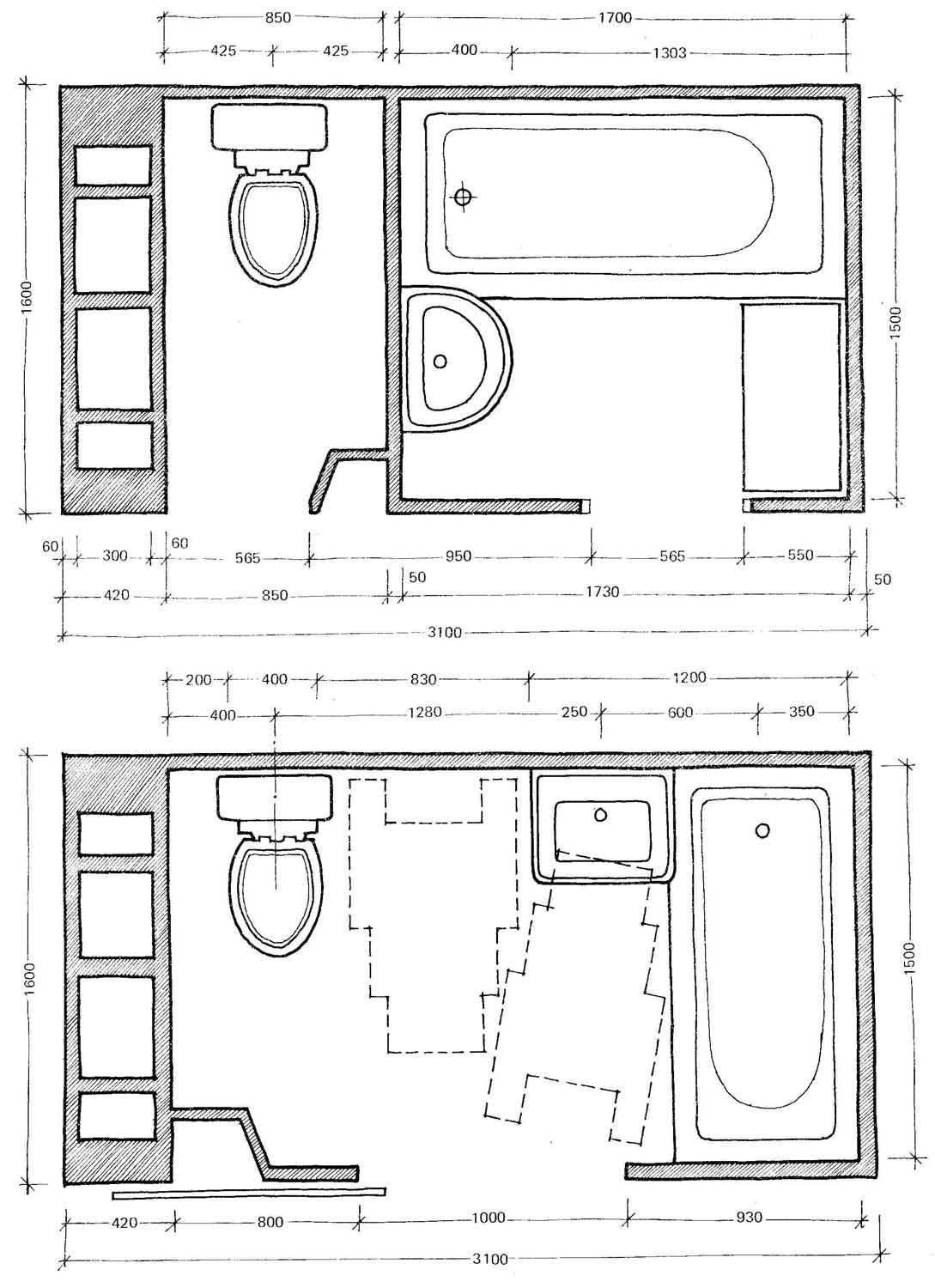 Планировка санузлов средних размеров в панельном доме