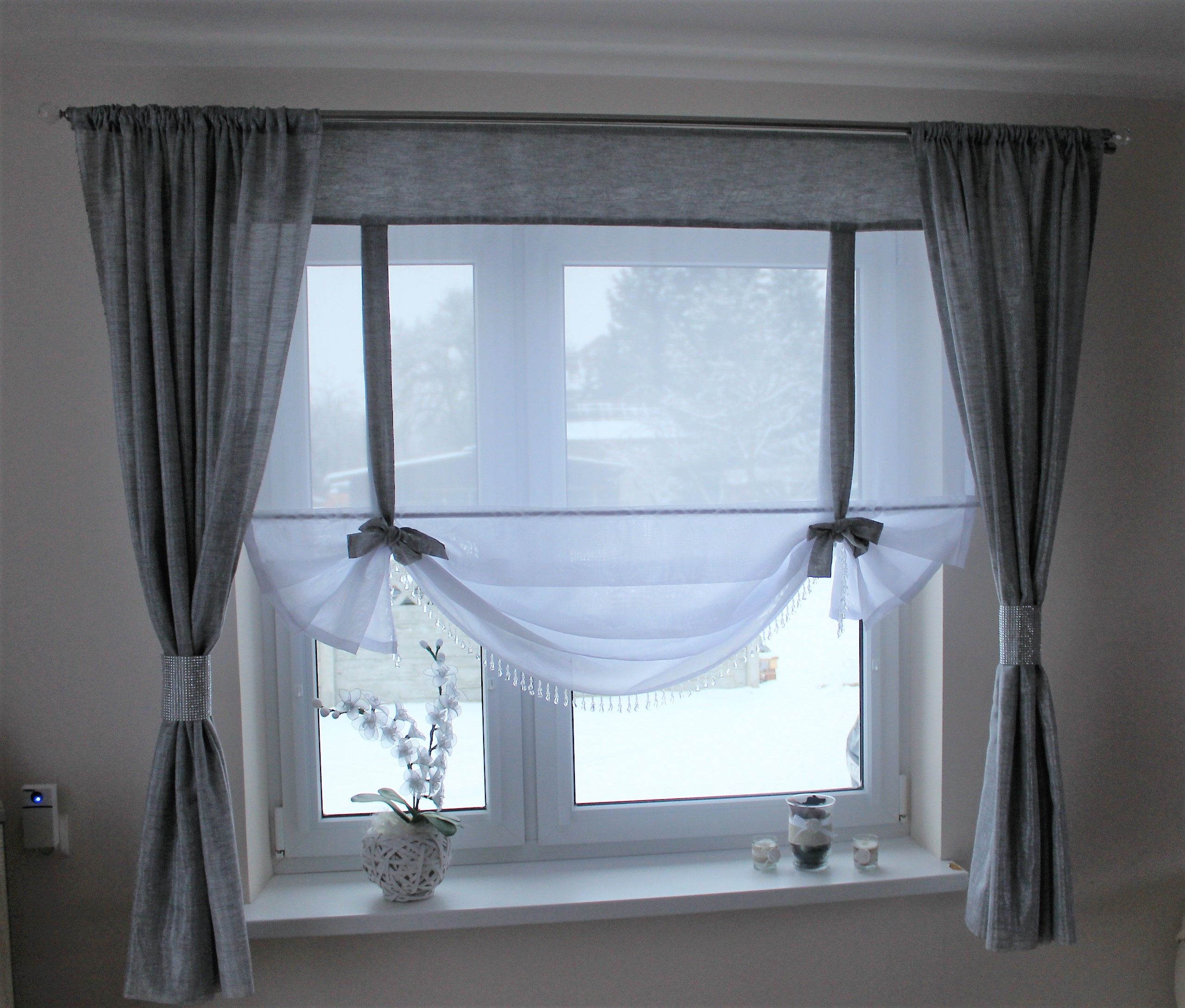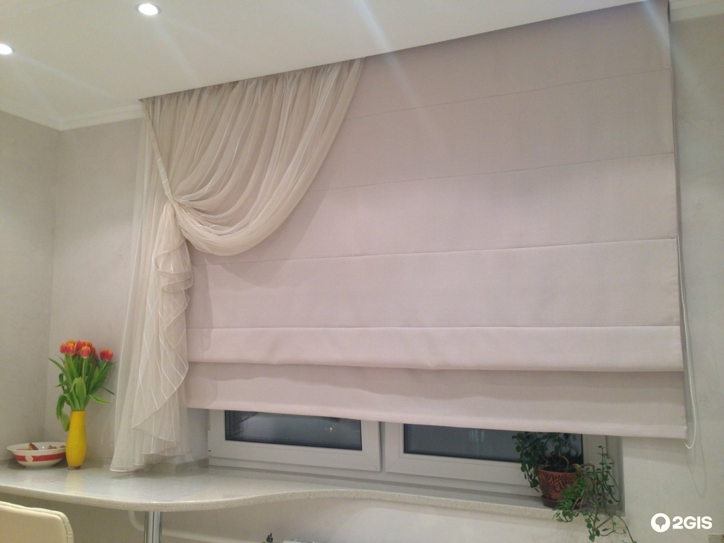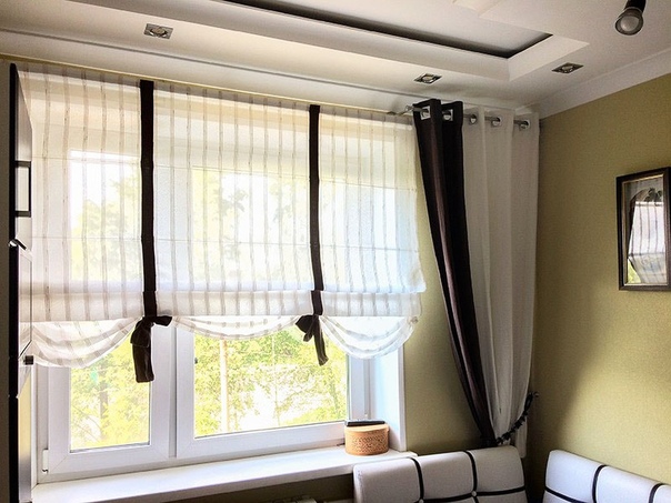 - различные комбинации штор, жалюзи и рулонных штор.