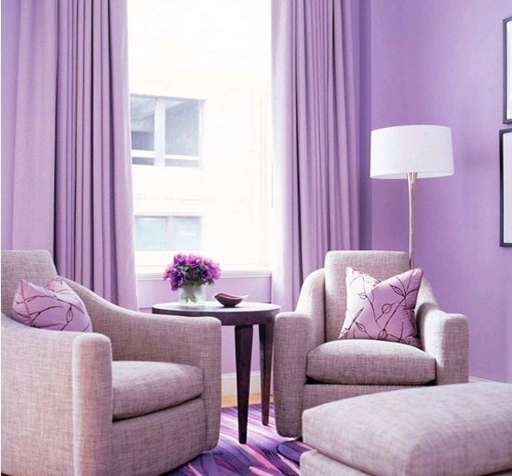 Фиолетовый, особенно на более светлом конце шкалы, можно использовать как более мягкую и романтичную версию серого. при обдумывании идей вашей комнаты.