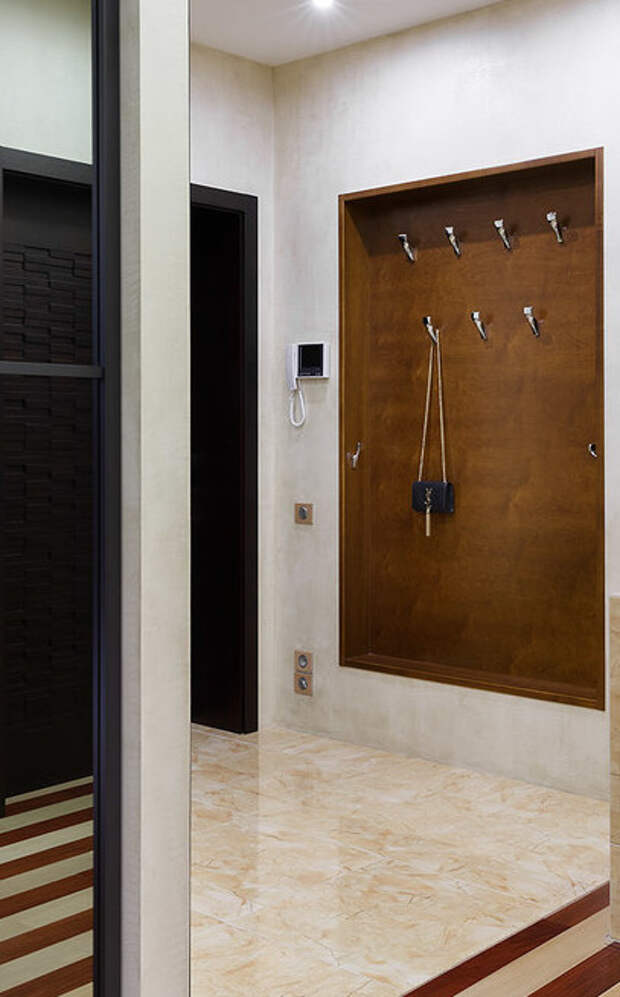У зеркального оформления фасада имеется еще одно основное преимущество. Она заключается в том, что такая блестящая поверхность, которая отражает в себе окружающее пространство, существенно увеличивает визуально габариты маленького коридора.