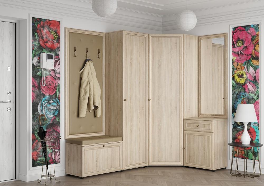 Угловая прихожая из натурального дерева в классическом стиле