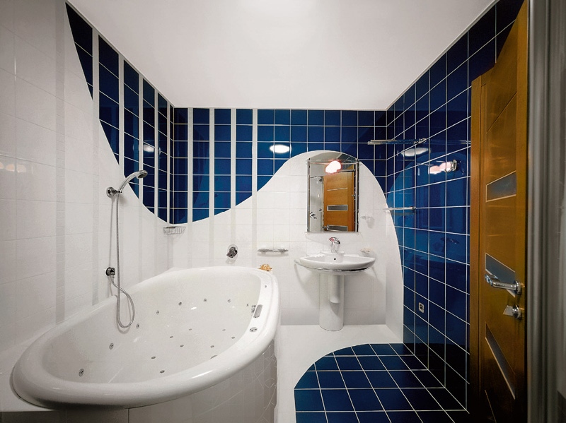 К примеру, вместо обычной прямоугольной ванны можно приобрести ассиметричную, угловую или небольшую «сидячую» ванну. Это поможет сэкономить ограниченной пространство помещения ванной.