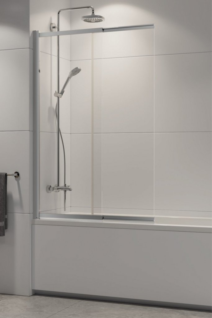 - Раздвижные. Собственно от душевой кабины их отделяет только частично открытое пространство. Направляющие для раздвижных стекол устанавливаются на края ванны, при полностью закрытой конструкции, брызги и пар не попадают куда угодно, что говорит о легком поддержании чистоты и гигиены.