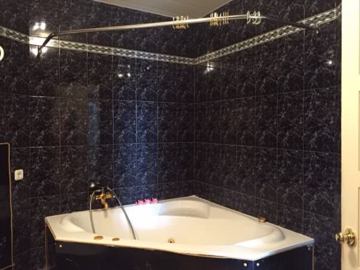 Асимметричные карнизы чаще всего используют для акриловых ванн