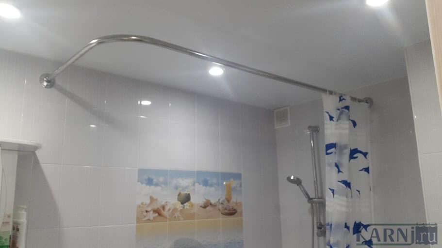 Карниз для угловой ванной комнаты может быть разной формы, выбор зависит от конкретного расположения ванны или душа.
