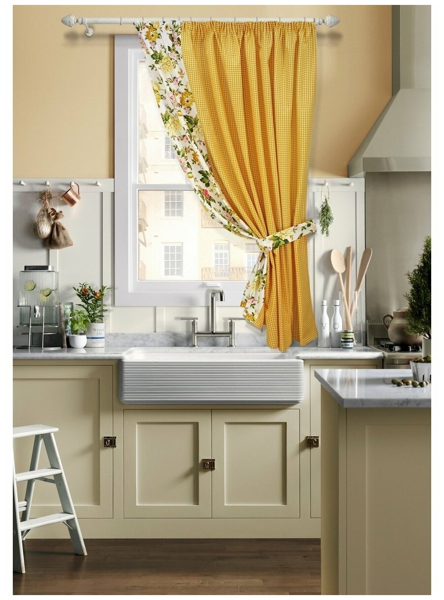 Большие и тяжелые шторы не подходят для кухни, но асимметричные шторы идеально подойдут для кухни.