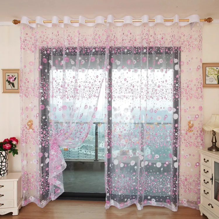 Часто в интерьере сочетают прозрачную однотонную органзу и вуаль с цветным рисунком схожего оттенка. На окно вешают вначале однотонную цветную, а сверху прозрачную с рисунком. Получается очень красивый объёмный эффект дымки.