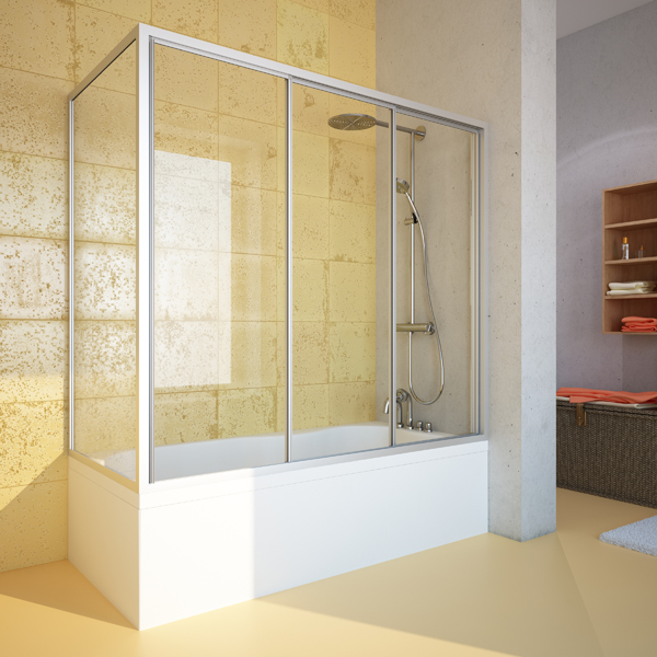 Такое решение убережет комнату от брызг и мыльной пены, однако для очищения этого прозрачного экрана потребуется влезть в ванну; - Раздвижные. Эта конструкция по своему принципу напоминает шкаф-купе. Ее устанавливают для экономии места. Если ванная невелика, рекомендуем купить раздвижные стеклянные шторки для ванной. Скользя по направляющим, они не выдвигаются вперед и не занимают лишнего места;