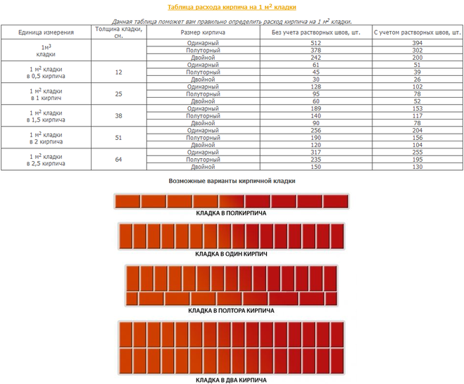 Затем, зная объем одной единицы используемого типа кирпича, следует вычислить общее количество блоков в 1 куб. м: