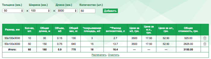 Указывая количество пиломатериалов в одном кубе мы давали цифру цельных досок или брусков, поэтому для расчета точнее использовать именно данные об объеме конкретного вида пиломатериалов, умножая их на количество.